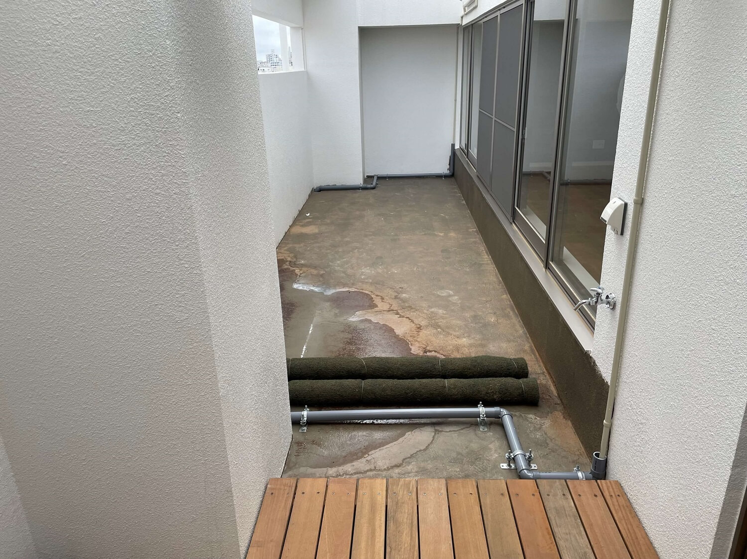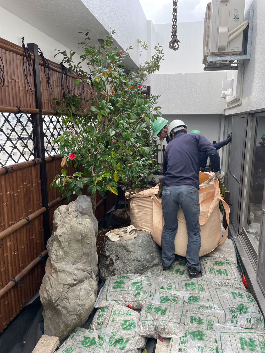 施主様から共同住宅の新築工事に伴い、上層階(9階)に庭を作りたいとのご要望がありました。