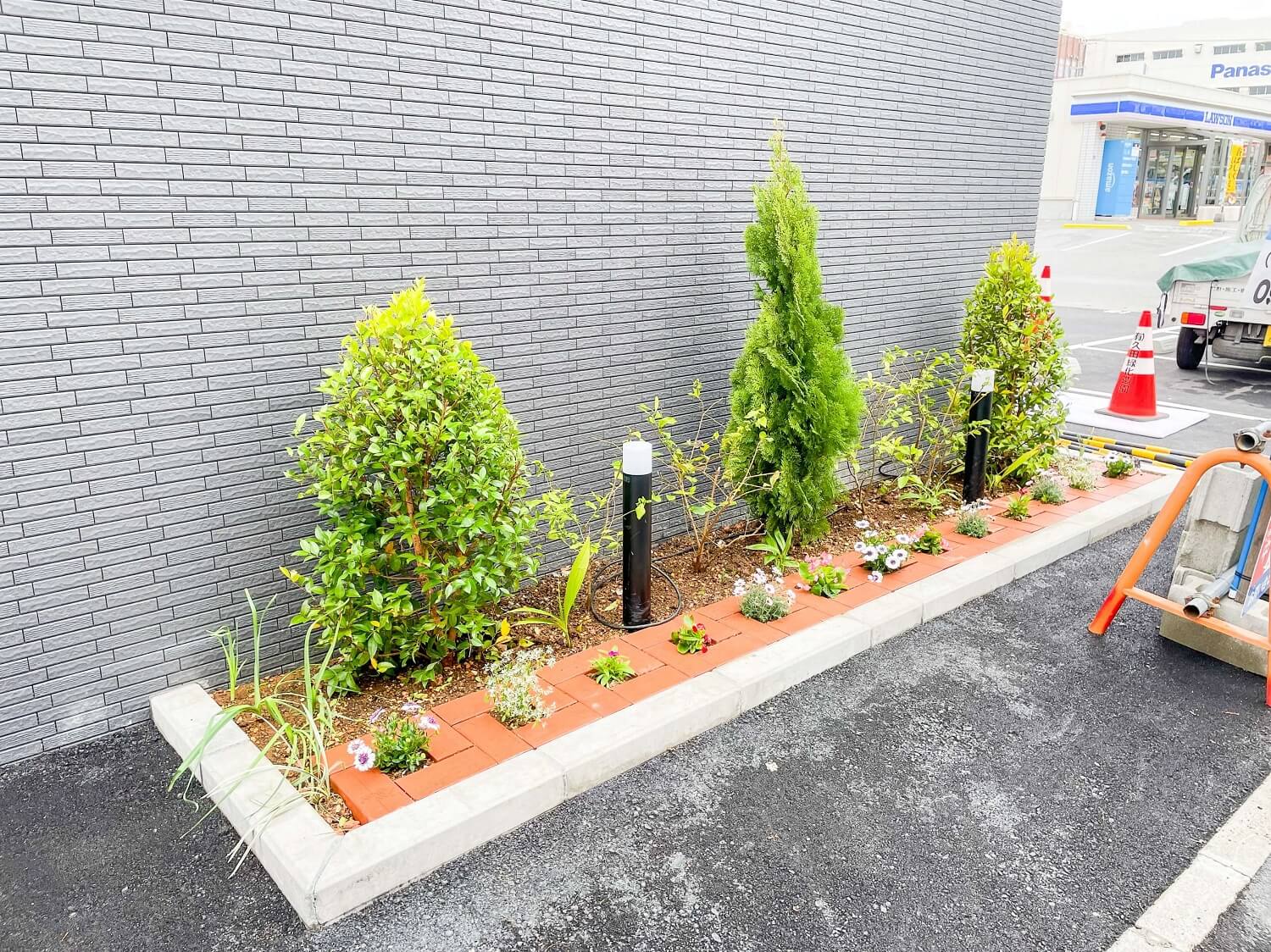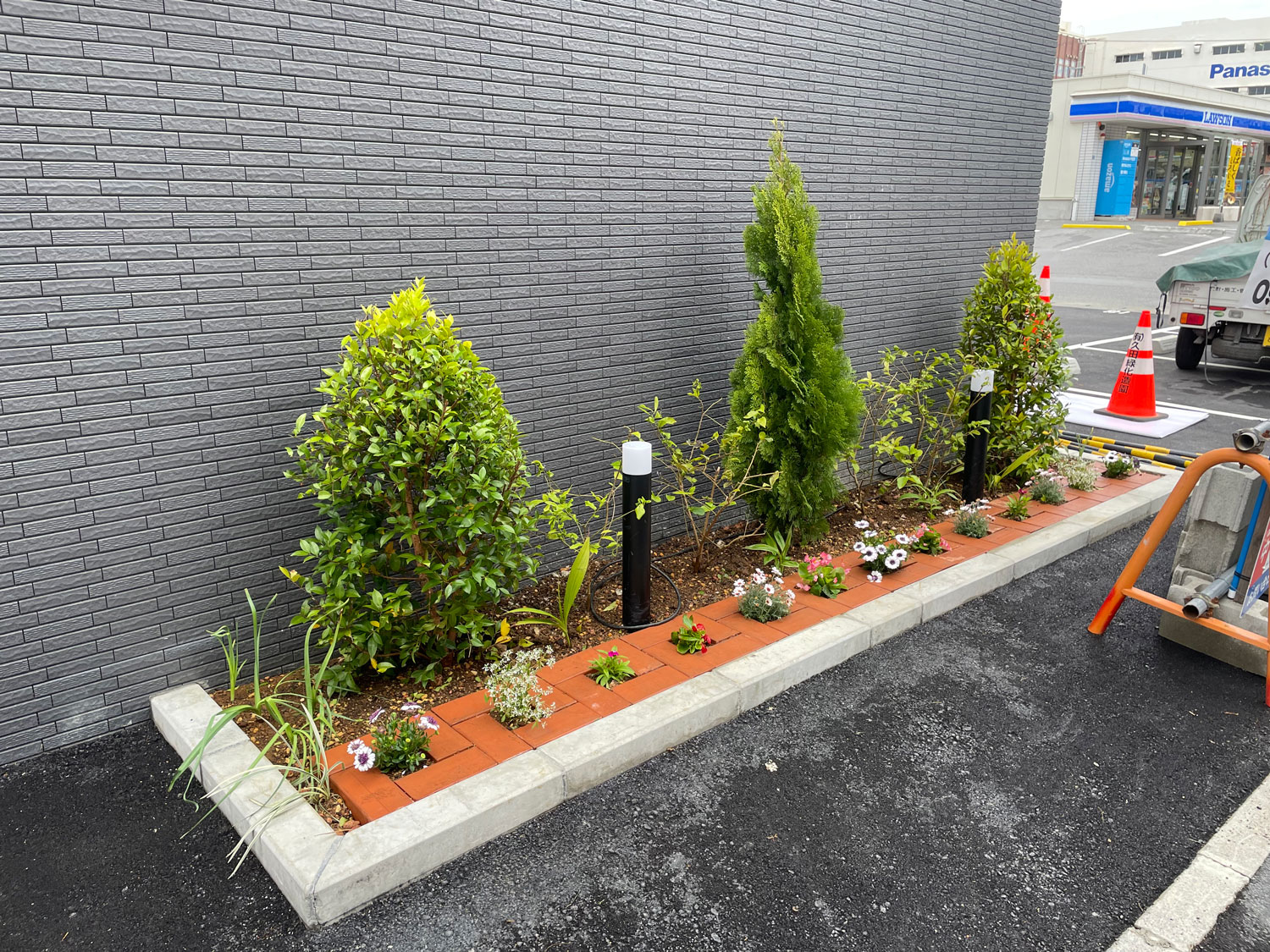 当初予定には入っていませんでしたが、1Fエントランスドア前の花壇も施工しました。