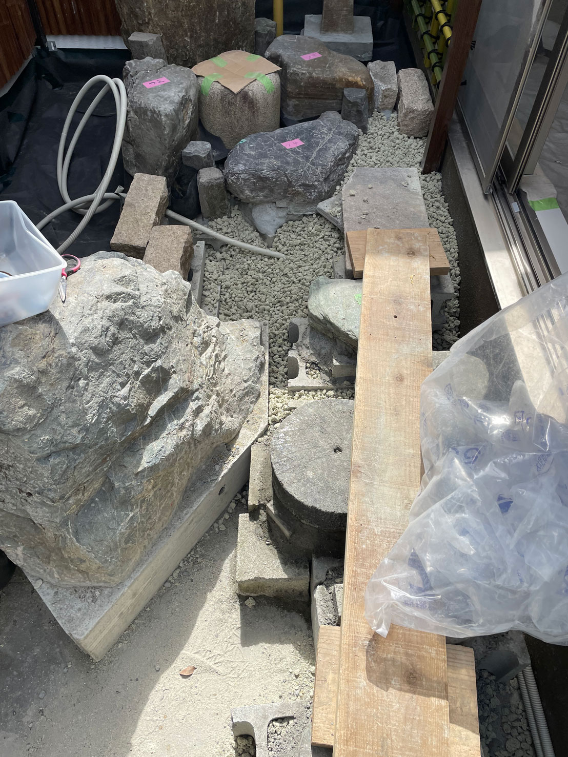最後に敷砂利を敷いて、照明を設置して作業完了です。