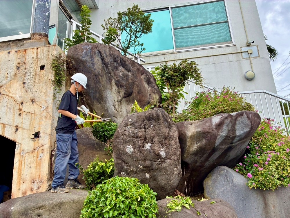現場では、植栽の剪定作業や庭園管理の基本となる道具の使い方など、